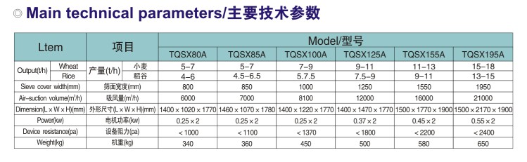 稻谷,大豆,玉米,芝麻,油菜籽和麥芽等物料的去石。